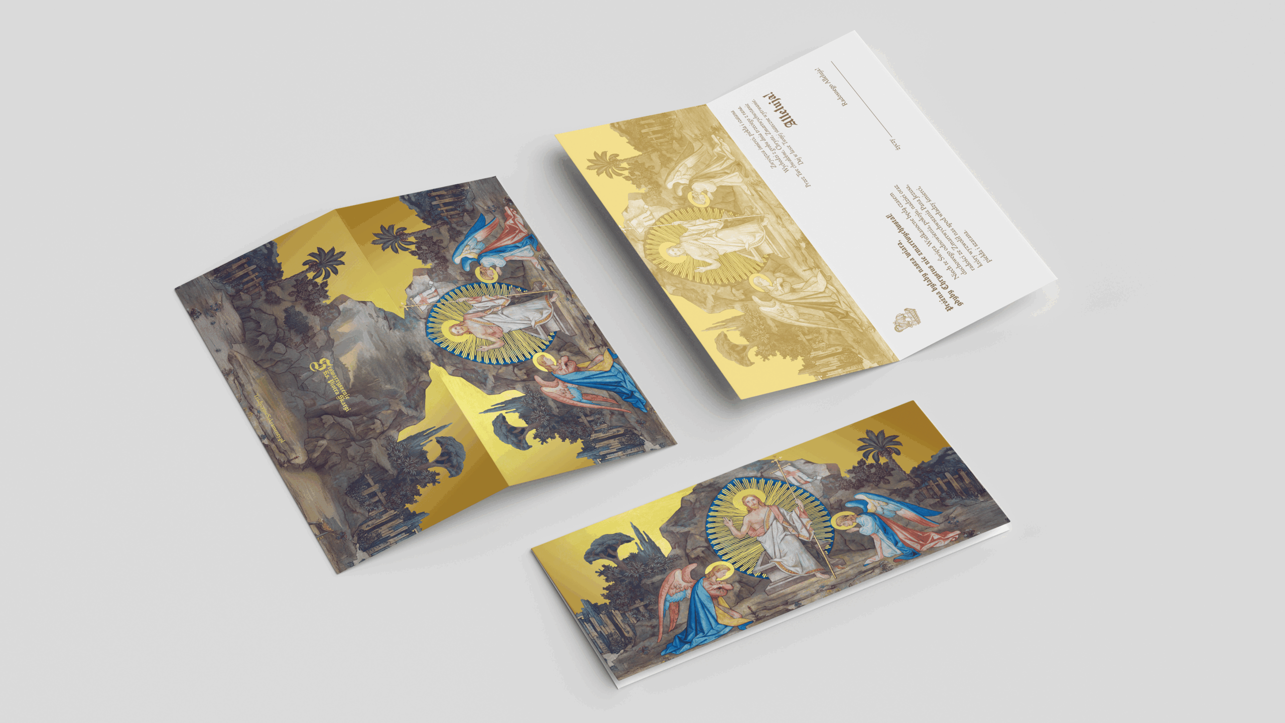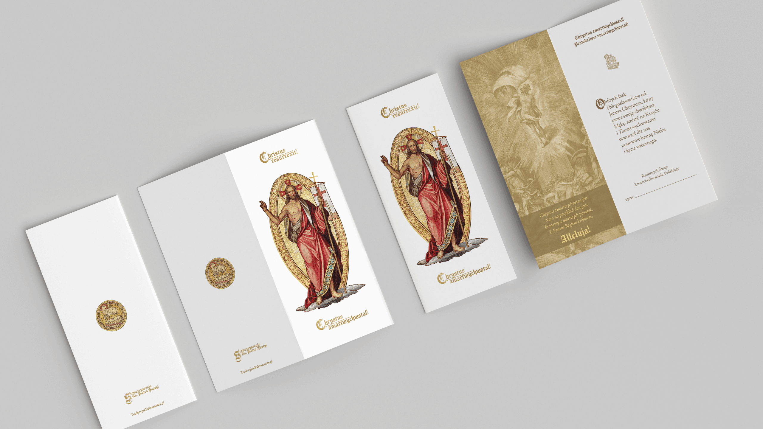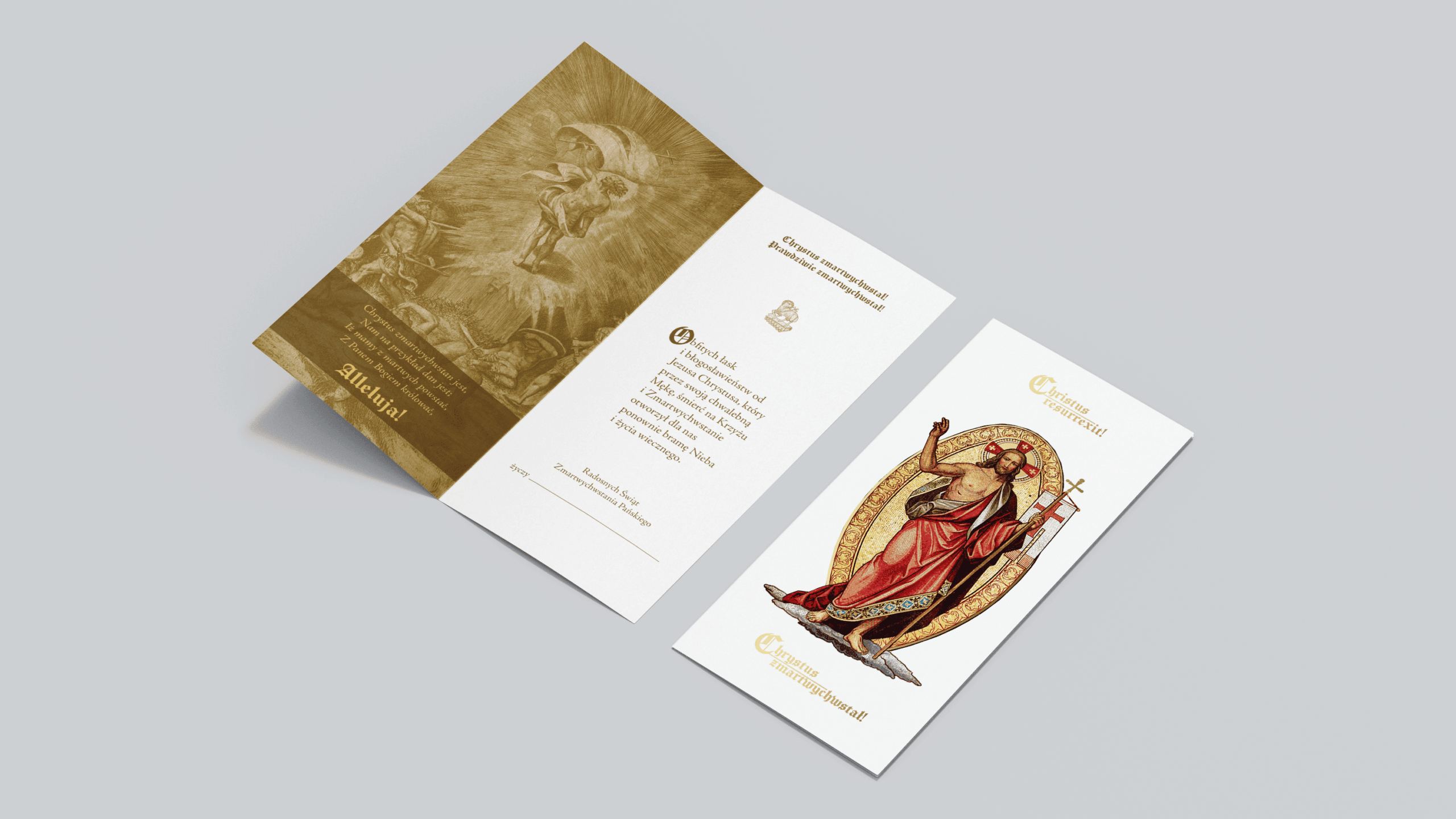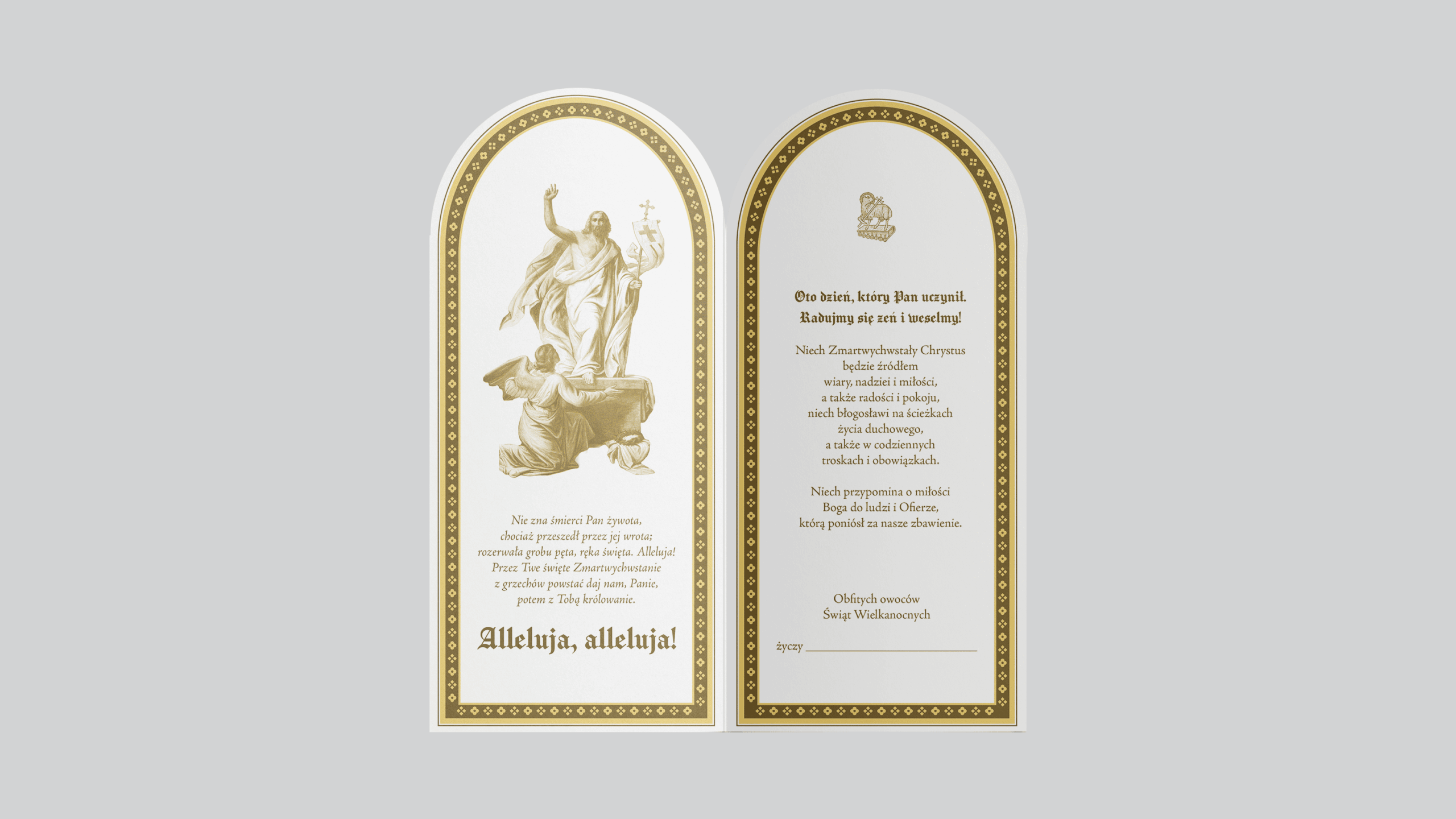 Pakiet zawiera zestaw trzech tradycyjnych kartek wielkanocnych wraz z ozdobnymi kopertami, które możesz wysłać do swoich najbliższych. Każda z nich jest bogato zdobiona, wyzłocona i wydana na eleganckim papierze. Wewnątrz umieściliśmy serdeczne życzenia wyrażające prawdziwą radość ze Zmartwychwstania Pana Jezusa w naszym życiu oraz miejsce na Twój podpis. Wartość pakietu wynosi 15 złotych (przesyłka gratis).